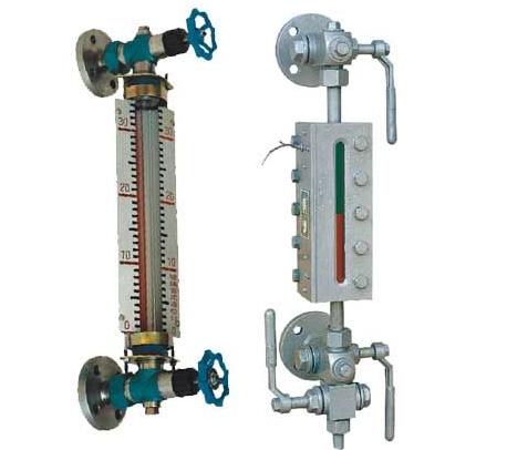 儀表上下閥門均裝有連接法蘭,法蘭接頭與被測容器焊接在一起而構成連通器,從而在玻璃管上可直接顯示容器內介質液位的高度。