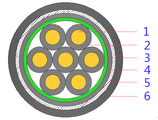 | 5 | 鎧裝層 | 鋼絲 | ||||||||||||||||||||