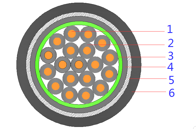 | 6 | 鎧裝層 | 鋼絲 | ||||||||||||||||||||